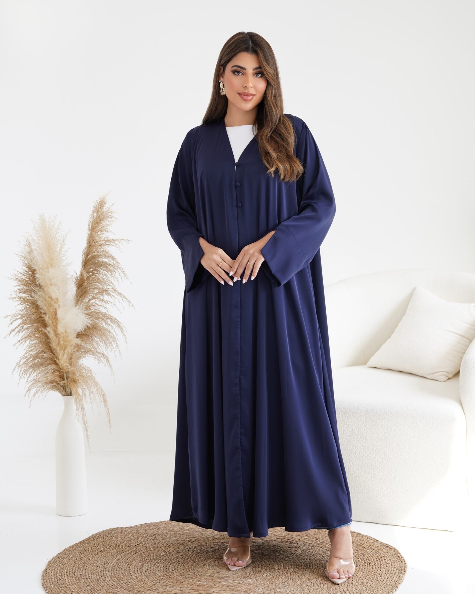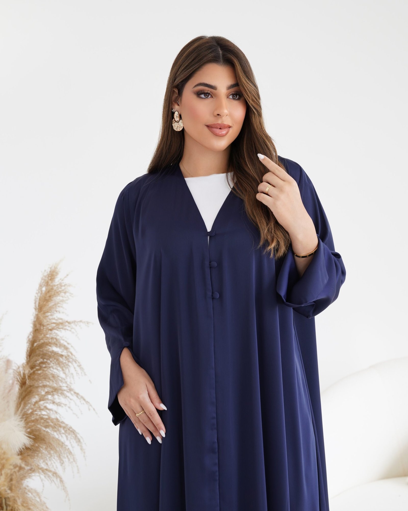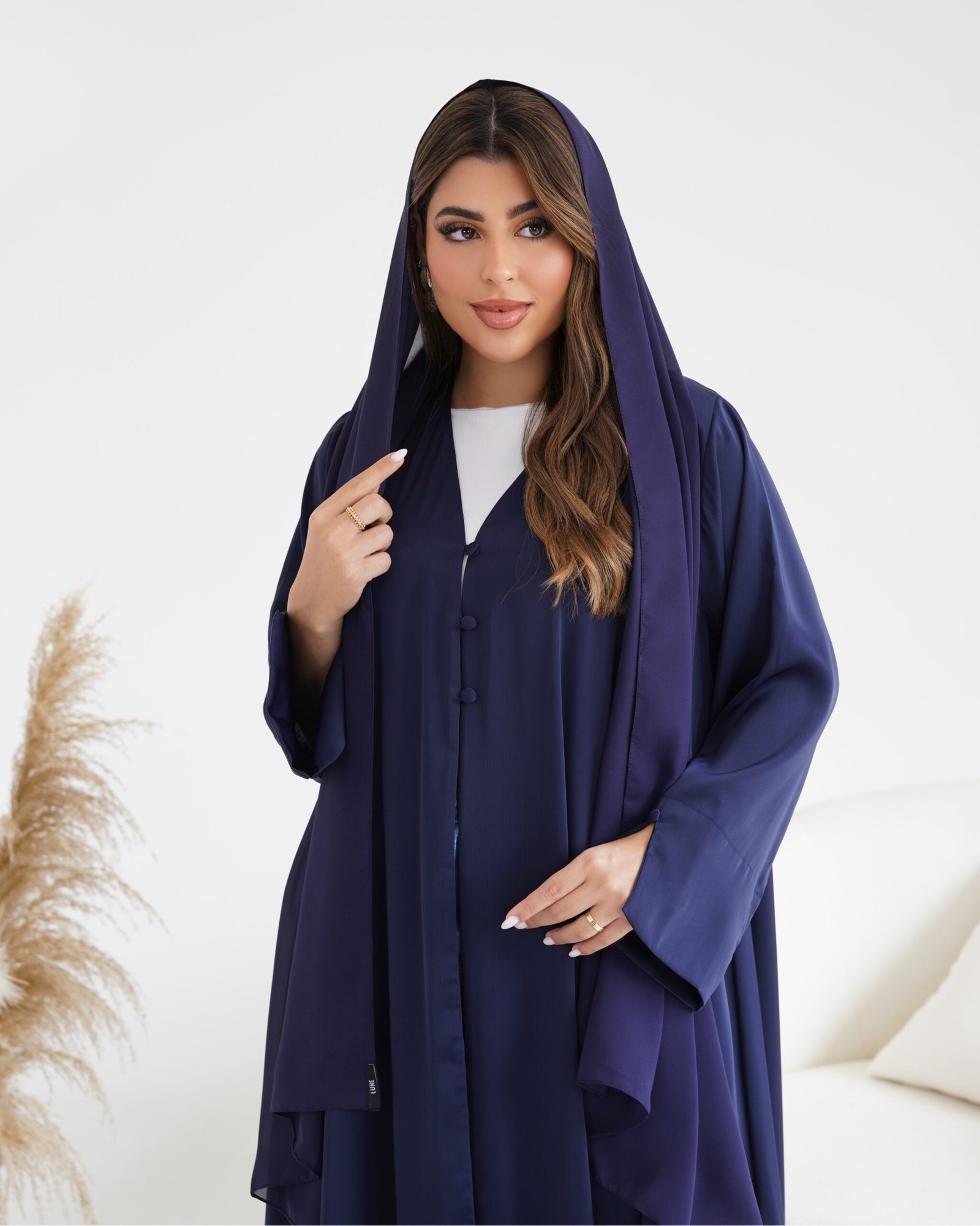 Modern abaya with fabric-covered buttons and matching Sheila. Simple and easy to wear for any occasion.