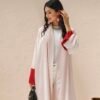 The Ruby Abaya from Lune is a confident, modern piece for the woman who loves clean lines and a little color. With a soft blush pink base and bold red color-block panels, this red and pink abaya feels fresh and current. It's the kind of piece that catches the eye without relying on embroidery or heavy detail — just a beautifully balanced mix of two tones.